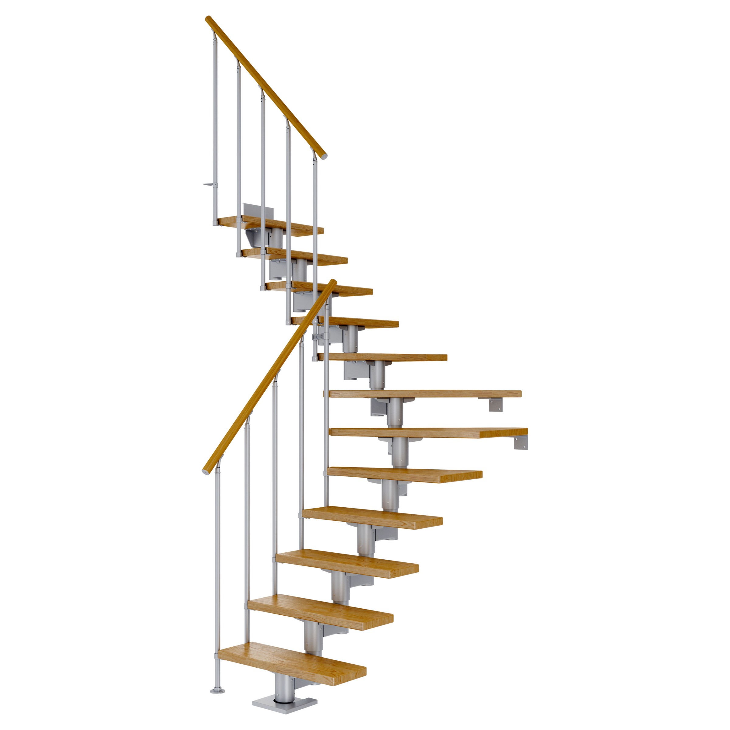Dolle Mittelholmtreppe Cork Eiche, lackiert 1/4 gewendelt 79 cm breit für GH 259 – 315 cm UK Metall Perlgrau mit Geländer